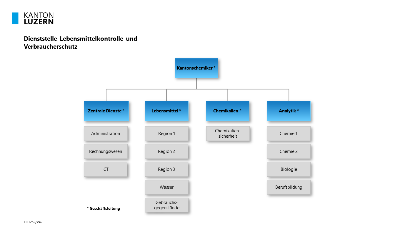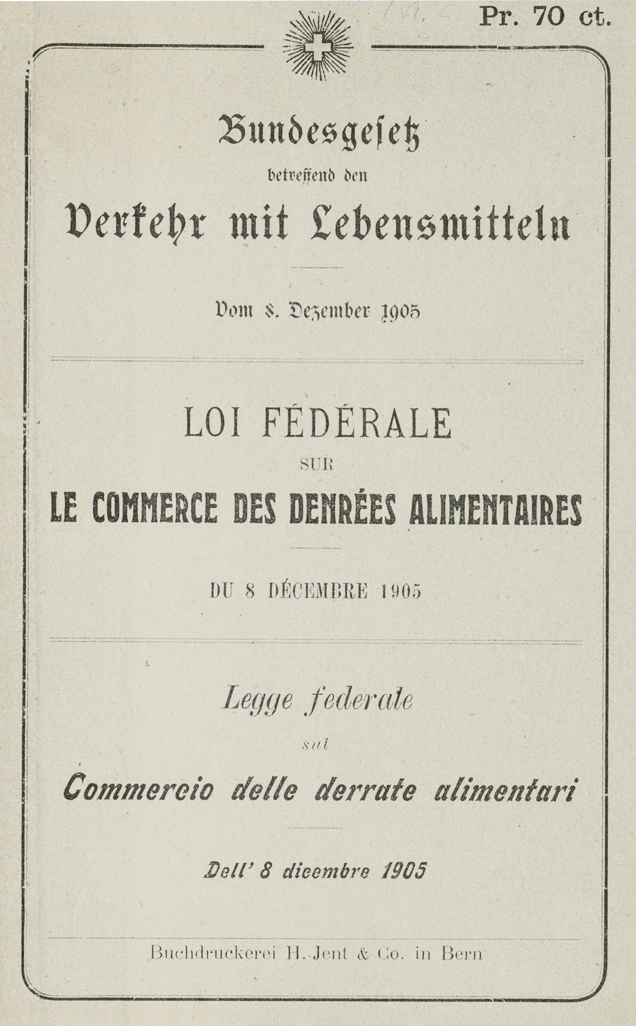 Ein in allen Schweizer Kantonen verbindliches Lebensmittelgesetz wurde 1909 in Kraft gesetzt. Dies als Konsequenz der im 19. Jahrhundert generell beobachteten Verschlechterung der Qualität der Lebensmittel. Der Kanton Luzern hatte schon früher reagiert: 1876 wählte er den ersten Kantonschemiker der Schweiz. Seine Aufgabe war, die Einhaltung der gesetzlichen Bestimmungen zu überwachen. Auch heute noch haben die Kantonschemiker mit ihren kantonalen Laboratorien für die Einhaltung der Lebensmittelgesetzgebung zu sorgen. Sie inspizieren Lebensmittelbetriebe, erheben Proben, untersuchen diese nach unerlaubten Bestandteilen und der Qualität und leiten bei Abweichungen vom Gesetz Massnahmen ein.